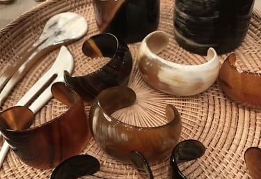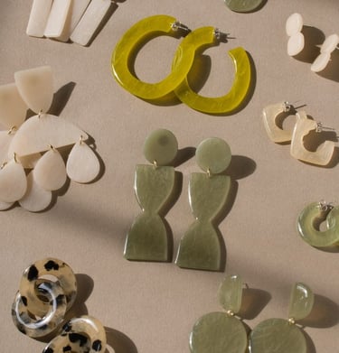 We craft unique jewelry using natural materials like horn, resin, and glass, each piece celebrating the beauty of handmade artistry.
